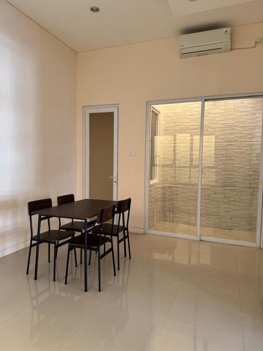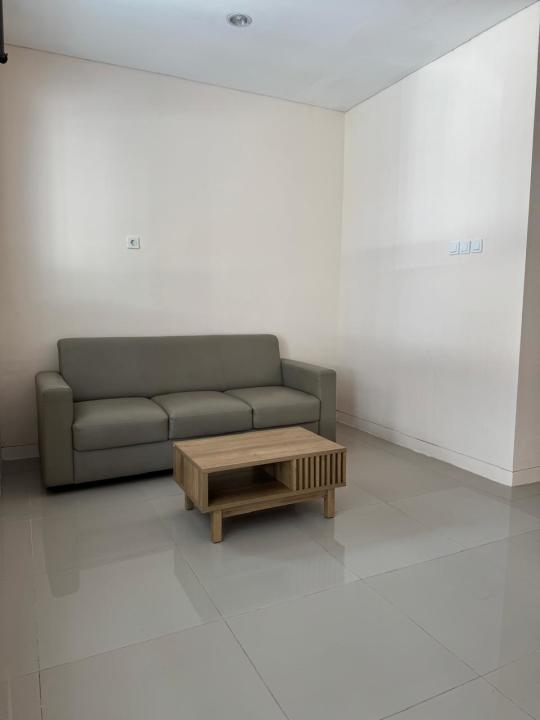 Furnish: sofa, coffee table, 1 set meja dan kursi makan, lemari pakaian.